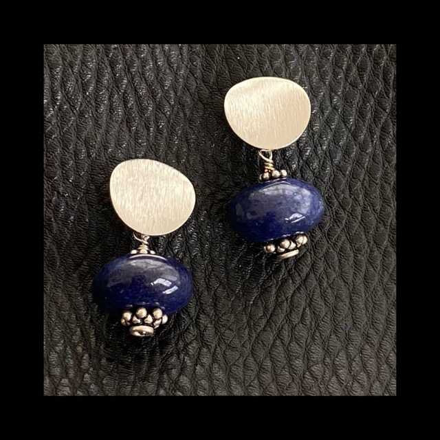 Orecchini realizzati con sodalite di forma a cipolla, decori in argento 925. Pezzo unico by Giuliana Santin. Se desideri acquistare o avere altre info scrivimi, sarò lieta di aiutarti.